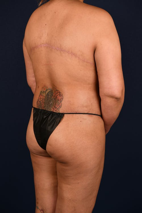 The upper body lift is a belt-like removal of excess skin and fat from the upper back. This procedure can be just centered on the back, or it can come all the way to the front, which would then address the circumferential laxity of the upper trunk.